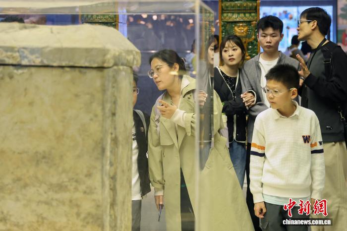4月2日,江苏北京,儿童跟班着家少正在年夜报仇寺遗迹专物馆观光铺旧的文物。中新社记者 泱波 摄