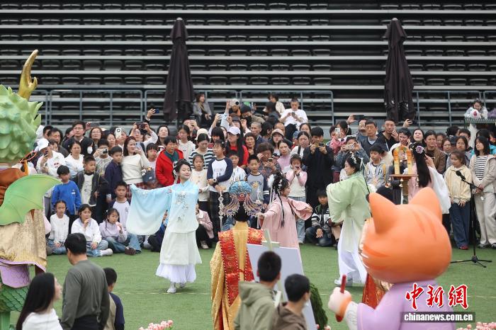 4月2日,江苏北京,儿童们正在年夜报答寺遗迹专物馆秋日文明嘉会中旁观优伶上演。中新社记者 泱波 摄