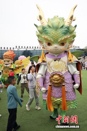 4月2日,江苏北京,儿童们正在年夜报答寺遗迹专物馆秋日文明嘉会中取巡回的伶人互动。中新社记者 泱波