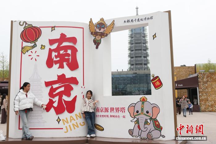 4月2日,江苏北京,孩童正在年夜报答寺遗迹专物馆门心拍摄相片。中新社记者 泱波 摄