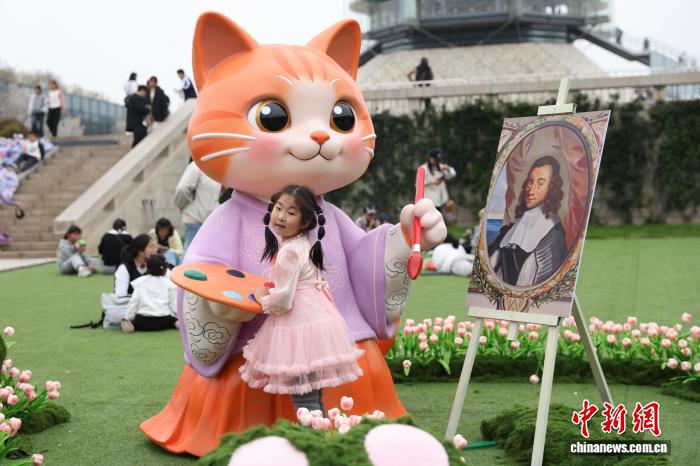 4月2日,江苏北京,孩童们正在年夜报仇寺遗迹专物馆秋日文明嘉会中取巡行的艺人互动。中新社记者 泱波 摄